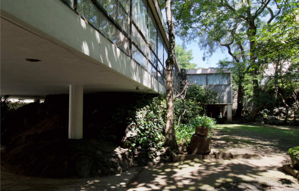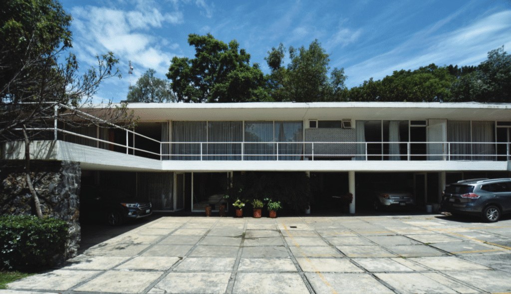 El lujoso fraccionamiento Jardines del Pedregal, conocido internacionalmente, se caracterizó, en sus primeras décadas por su arquitectura moderna con soluciones que respondían a las características físicas del Pedregal de San Ángel. Los arquitectos: Luis Barragán, Max Cetto, Francisco Artigas, Antonio Attolini, Manuel Rosen, Jaime Cevallos Osorio, José María Buendía, entre otros, lograron plasmar en su arquitectura, las características y valores del sitio, explotándolos como rasgos de sus casas proyectadas, tales como la utilización de volúmenes con tendencia a la horizontalidad, la ortogonalidad y la sencillez, además del uso de techos planos y materiales como concreto, acero, roca volcánica y vidrio. En diversos casos estos volúmenes arquitectónicos fueron planeados para ser sustentados por los monolitos de roca o para que emergieran del paisaje, de modo que buscaban fusionar la arquitectura con el paisaje y, en otros casos, propiciar una disparidad que lograba potencializar la presencia de ambos elementos.