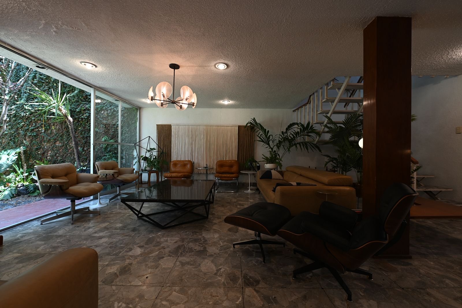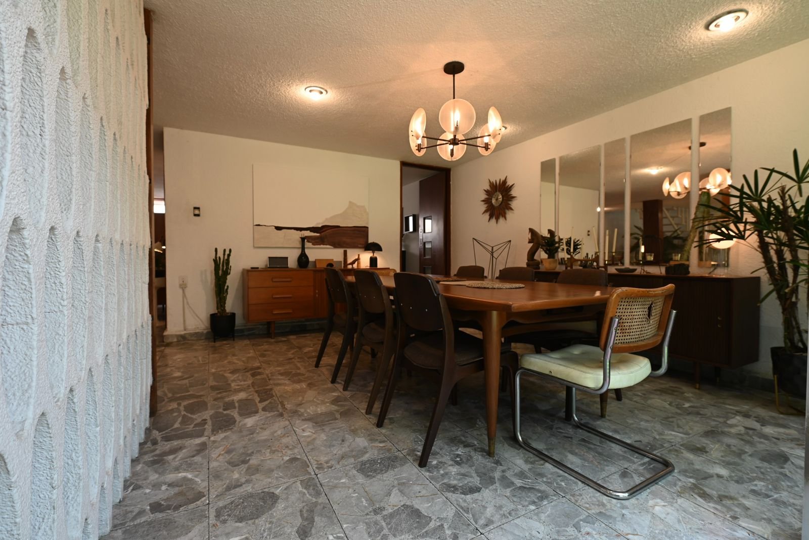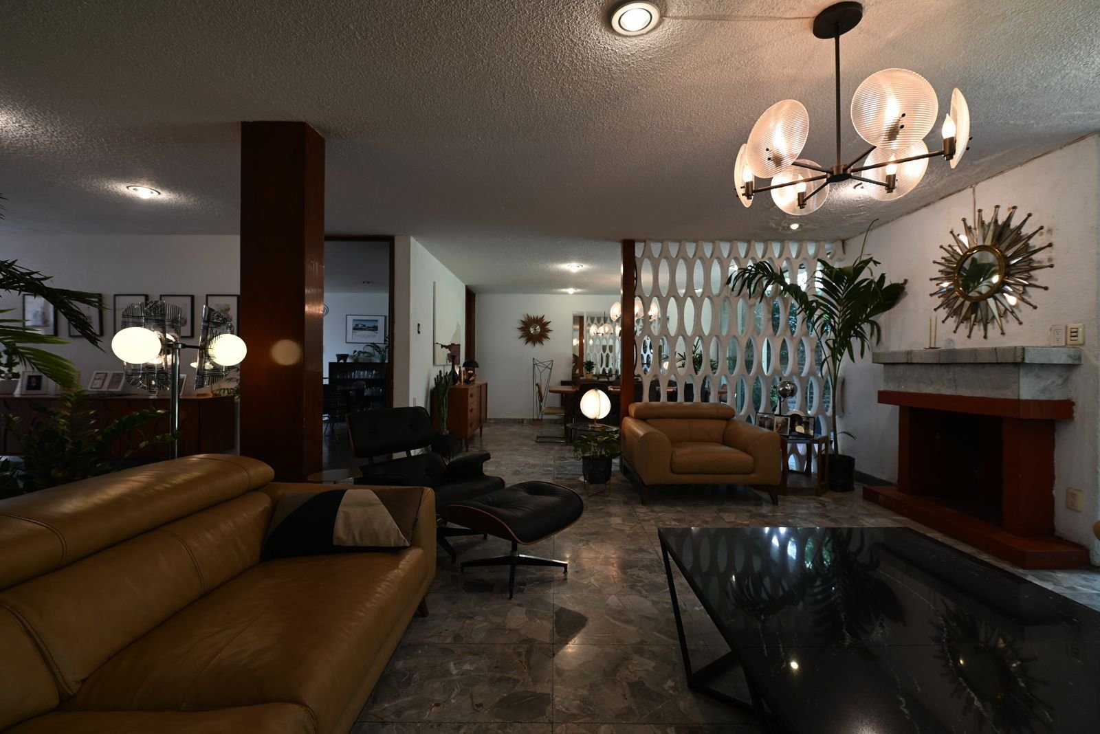 Desde su llegada, el mobiliario fue replanteado para establecer coherencia con la arquitectura de 1960 —año en que fue construida la casa—: piezas de diseño producidas entre 1950 y 1970 sustituyeron elementos ajenos al lenguaje espacial original. Esta decisión no responde a una recreación escenográfica, sino a una búsqueda de continuidad histórica y material. La colección de más de 60 relojes y objetos de mediados del siglo XX dialoga con la estructura de la casa, reforzando su identidad moderna sin convertirla en museo.
