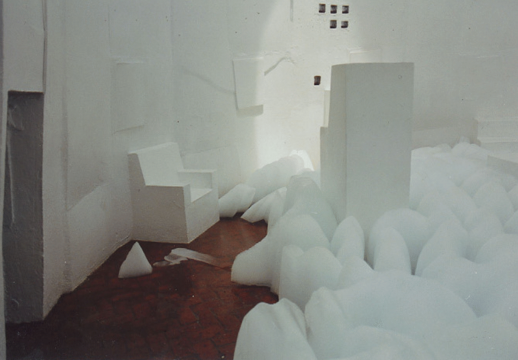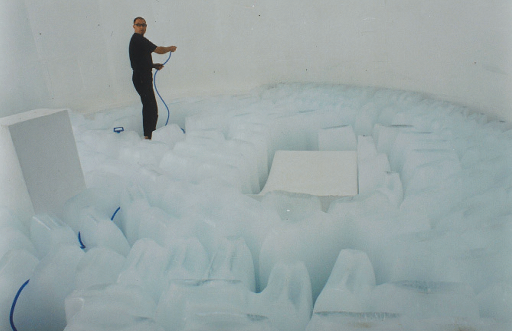 Paisaje es una instalación compuesta por trescientos bloques de hielo de ciento setenta centímetros de alto cada uno. En total cuarenta y cinco toneladas de hielo cubriendo la superficie interior de la Torre.