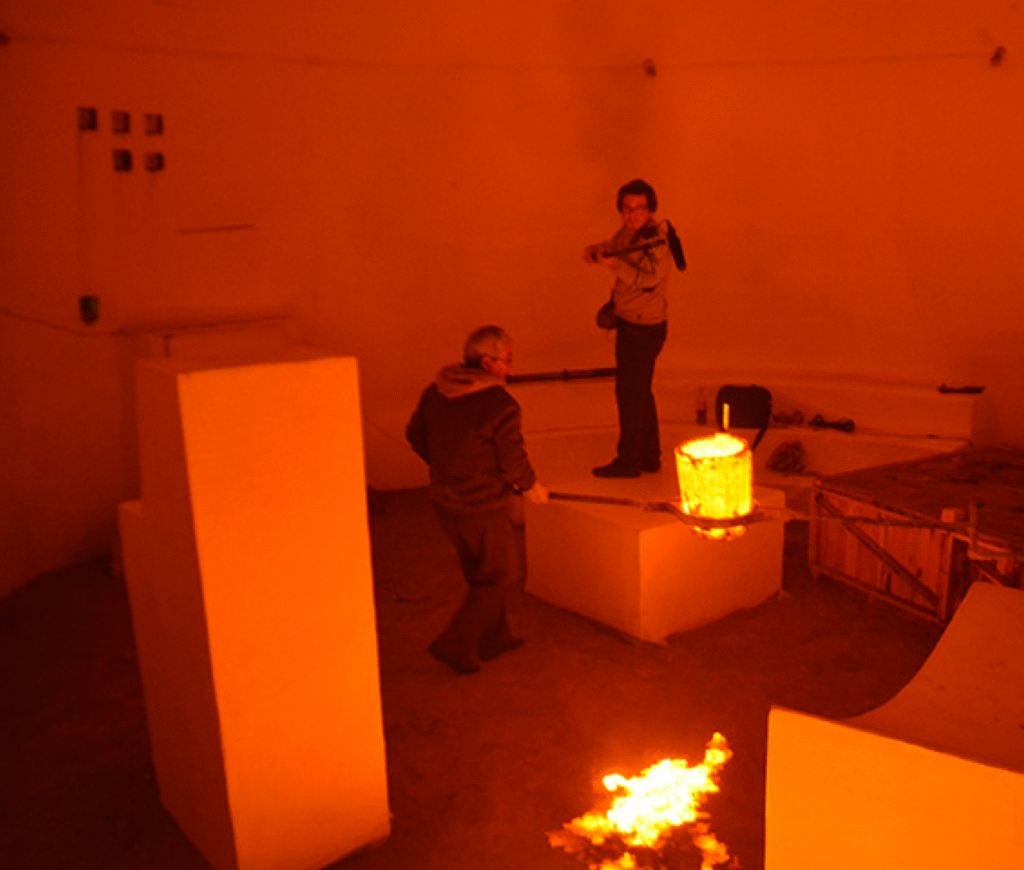 Mario de Vega lo hizo con Vórtice Negro; proponiendo una modificación temporal al interior de la Torre de los Vientos mediante procesos de combustión controlados, los materiales lanzados imprimieron los muros bajo resultados aleatorios obtenidos por la reacción en cadena de las combustiones.